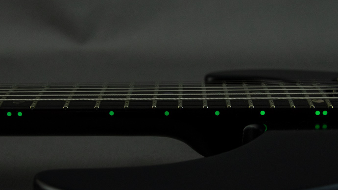 指板はエボニー。ポジションマークはアバロン・ドットです。